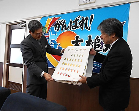 贈呈式では、これまでOACが取り組んできたクリボラ活動の概要と本プロジェクトに関する鈴木理事長の説明に対し、副町長からは「復興にはまだまだ時間がかかり、今後は被災者の心のケアが大きな課題となるため、こうした心が和らぐカレンダーを提供いただくのは大変ありがたい」との謝辞をいただきました。