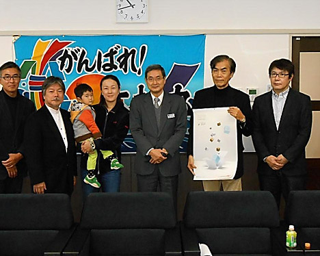 第4回クリボラ実行委員会(井上委員長/村上委員)は、東日本大震災の被災地・岩手県大槌町への復興支援カレンダー配布と義援金提供のため、鈴木理事長、三上事務局長とともに同町を11月15日に訪問。町役場で佐々木彰副町長と田中恭悦被災者支援室長に面会し、銀座三越などでのカレンダー販売収入と寄付金481,800円の義援金(目録)と、仮設住宅の集会所で配布するカレンダー1,000部の贈呈式を行いました。