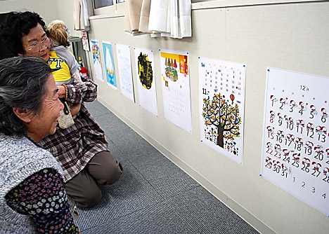 この日は、町役場の掲示板スペースと町内に点在する仮設住宅を回り、拠点となる集会所3ヵ所の壁面にカレンダーのプリント48点を掲出。役場や集会所に居合わせた被災者の方々から、支援先に大槌を選んでくれたことや地元を意識したカレンダーづくりへの謝意とねぎらいの言葉をいただきました。