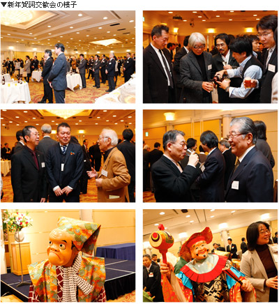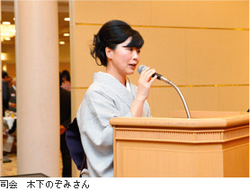 クリボラカレンダー展の贈賞式も終了し、6時30分より賀詞交歓会の始まりです。司会は(有)ブレインカフェ代表取締役、木下のぞみさんが務めます。和服姿の小粋な彼女には打ってつけのお役目です。