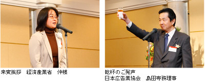 引き続きご来賓を代表して経済産業省文化産業情報関連産業課課長補佐の仲様よりご祝辞を頂戴し、乾杯のご発声は、一般社団法人日本広告業協会の島田専務理事(当協会員外理事)が務められました。