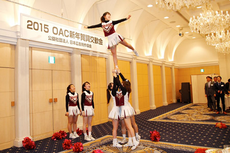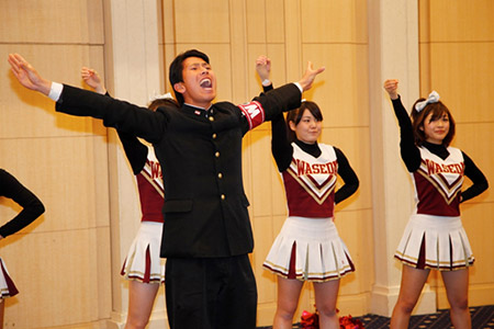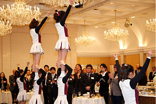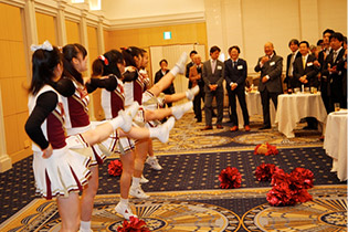 ![]() さて、今年の賀詞交歓会には早稲田大学応援部チアリーダーズ「BIG BEARS」 の皆さんに登場してもらい、参加した皆さんに元気をお届けしました。