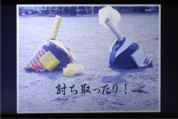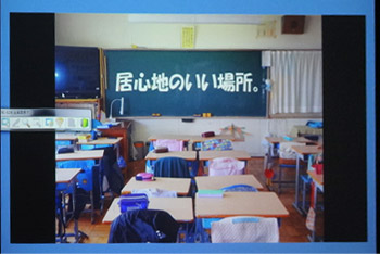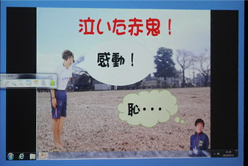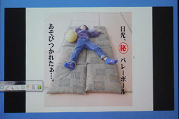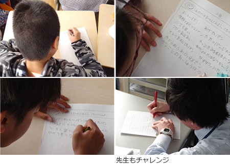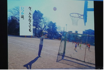 黒須さんは言います、「このウォーミングアップをやるかやらないかで、この後の伸びが違ってくる」と。とにかくひたすら思いついたことを書くこと。苦しくても書くこと。 さて、次に黒須さんは実際の広告例を用いて話します。 例えばとして、イナバの物置を「6,000sの大人が載っても丈夫な物置」と「100人載っても大丈夫」どっちが好き?と聞きます。 子どもたちは既に知っているので、「100人・・・」を選ぶ子が多かったのですが、中には最初の方が良いと言う子もいます。 黒須さんは、「少数意見は大事!」とその子たちにも声掛けを忘れません。 短く、そして相手に伝わるように。いよいよキャッチコピーを書きはじめますが、その前に「思い出」をみんなで話し合おうと、グループに分かれてあんなことがあった、こんなことがあったと話し合い、その中でも自分にとってはこれというものをキャッチコピーにしていきます。 ![]() ![]()