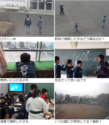 ![]() ![]() 何を撮ったらいいか悩んでいる子もいます。「思い出ないもん」と。でも、いろいろ聞いていくと、日光で夜寝転んで友だちと話したことが面白かったといいます。じゃ、何人かに協力してもらって今日じゃなくていいから、和室で寝転んで撮ってみたら。そんな声掛けもしてみました。