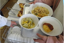 ![]() 焼きそばとコロッケとサラダに牛乳。