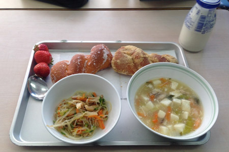 最終日は言葉と絵を合わせて一枚のポスターにします。 どんなキャッチでどんなビジュアルになるのか、楽しみです。 ちなみに、今日の給食。