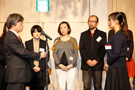 ![]() 最後に、受賞者と鈴木理事長、村上クリエイティブ部会部会長とで記念撮影。