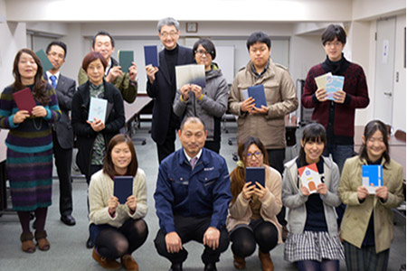 最後は、創ったオリジナル製本を持って記念撮影。おつかれさまでした。