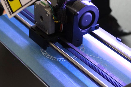 プリンタが動き出しました。こちらは積層型3Dプリンタ。下から積み重ねていき、形を再現していきます。
