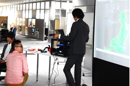 さて、次は3D用のソフトを使ってデザインしてもらいました。さすがクリエイターの皆さん、講師の方からも「何回か3Dプリンタの講座をして作ってもらっているが、皆さん独創的」との声。