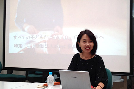 7月の経営部会は、自社の業績向上やビジネスチャンスをめざしてともに学び情報交換をしてきたこれまでの内容とは少し目線を変え、「日本の子どもたちの今を知り、どうあるべきかを考える」という公益社団法人らしいテーマで社会を考える場としてみることにした。 講師として、チャイルドセーフティネットの充実化をめざすNPO法人「スリーキーズ」代表の森山誉恵(もりやまたかえ)さんをお招きし、お話をうかがった。