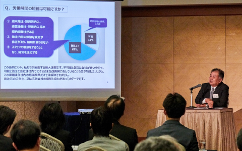 当協会の「働き方」改革特別委員会委員長にて、株式会社たき工房の代表取締役社長の湯浅氏に説明をいただいた。
