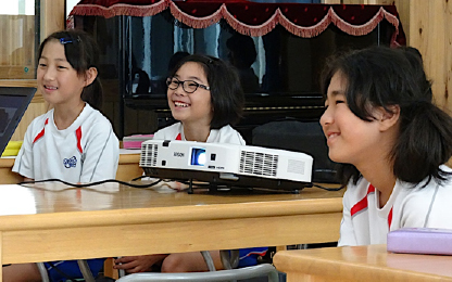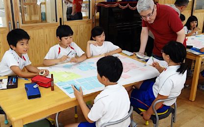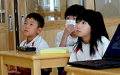 朝、8時25分から12時20分まで、2クラス各2時間ずつの授業開始。