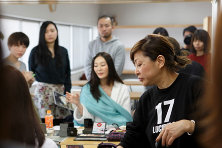 モデルは美咲さん、そしてヘアメイクはマリアさんこと橋本さんです。 まず最初はモデルさんのメイクルームへ。 モデルさんを前にみなさん緊張気味だったのかなかなか質問が出ませんが、 気がつけば橋本さんの人柄と軽快なトークに引き込まれて 話は次第にメイク講座になっていました。 ![]() モデルさんの準備が整ったら動画撮影へ。