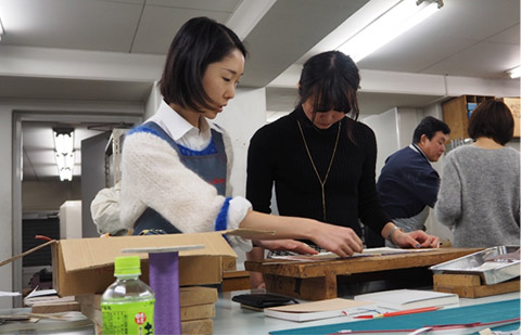東京都製本工業組合にご協力いただき、上製本の制作実習スタートです。