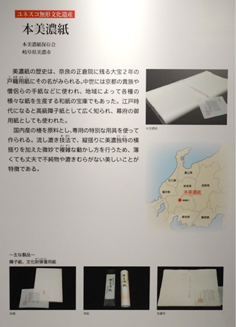 この会館では、美濃和紙以外にも全国の和紙を紹介するコーナーも。