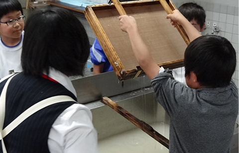 当日は地元の小学生でしょうか、手漉き体験も行っていました。