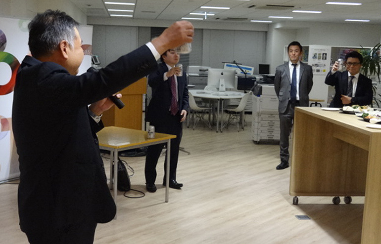 その後、玉手さんを囲んでアサヒスーパードライで乾杯し、交流会に移りました。